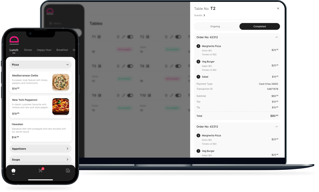 Save Money through Optimized Table ManagementEffortlessly manage your restaurant. Streamline your tasks, monitor performance, and make informed decisions with ease. You'll have complete control at your fingertips, ensuring a seamless and efficient restaurant management experience. Serve more customers and manage more tables without additional staff by empowering guests to order what they want, when they want.
